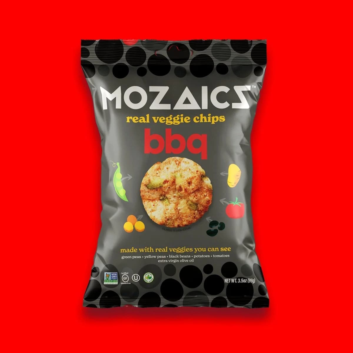 The Mozaics line in the header uses bold typography and color blocking to make an immediate visual statement on-shelf while keeping the product positioning clear.